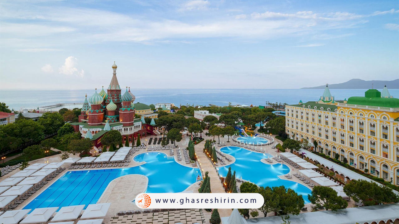 هتل کرملین پالاس آنتالیا یکی از هتل های لوکس 5 ستاره در منطقه لارا است که با الهام از معماری باشکوه کاخ کرملین روسیه طراحی شده است. اقامت در این هتل فرصتی خاص برای تجربه فضای سلطنتی و مجلل به سبک روسی برای مهمانان است. علاوه بر این، هتل دارای ساحل خصوصی است که آن را به گزینه ای ایده آل برای تعطیلات تابستانی تبدیل می کند.