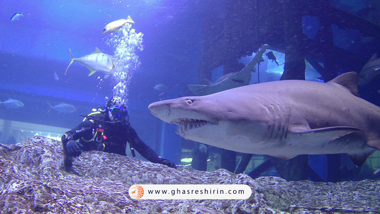 غواصی با کوسه ها: یکی از هیجان انگیزترین تجربیات آکواریوم دبی، امکان غواصی در مخزن اصلی آکواریوم با کوسه ها و سایر موجودات دریایی است. این تجربه برای کسانی که علاقه مند به غواصی و نزدیک شدن به دنیای زیر آب هستند، بسیار جذاب و منحصر به فرد است.