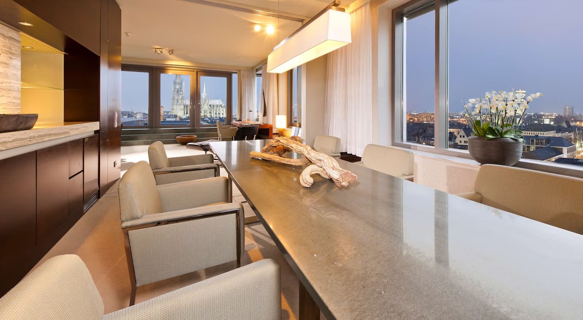 هتل دورینت ام هومارکت در منطقه هومارکت (Heumarkt)، یکی از زنده ترین نقاط کلن، قرار گرفته است. این موقعیت مرکزی به شما امکان میدهد به راحتی به جاذبه های اصلی شهر دسترسی داشته باشید. فاصله هتل تا ایستگاه مترو هومارکت فقط ۲ دقیقه پیاده روی است و تا ایستگاه قطار مرکزی کلن (Köln Hauptbahnhof) حدود ۱۰ دقیقه با ماشین راه دارید. فرودگاه کلن بن هم در ۱۵ کیلومتری هتل قرار دارد که با تاکسی یا حمل و نقل عمومی به راحتی قابل دسترسی است.