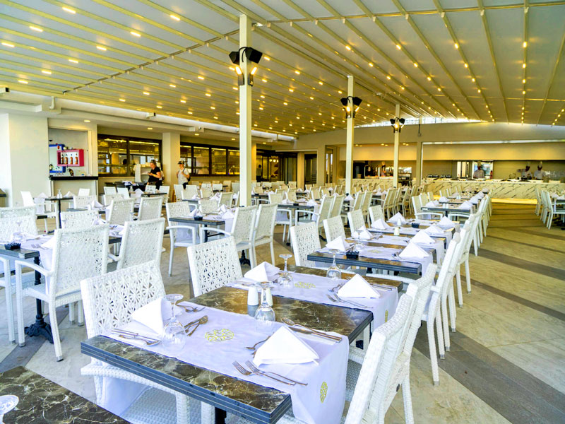 رستوران هتل با منظرهای فوقالعاده و موسیقی زنده، غذاهای محلی و بینالمللی را ارائه میدهد. همچنین تراس بار نیز با منظره فوقالعاده و اجرای موسیقی زنده، فضایی شاداب و دلپذیر را برای گذراندن اوقات فراغت به گردشگران تور مارماریس ارائه میدهد.