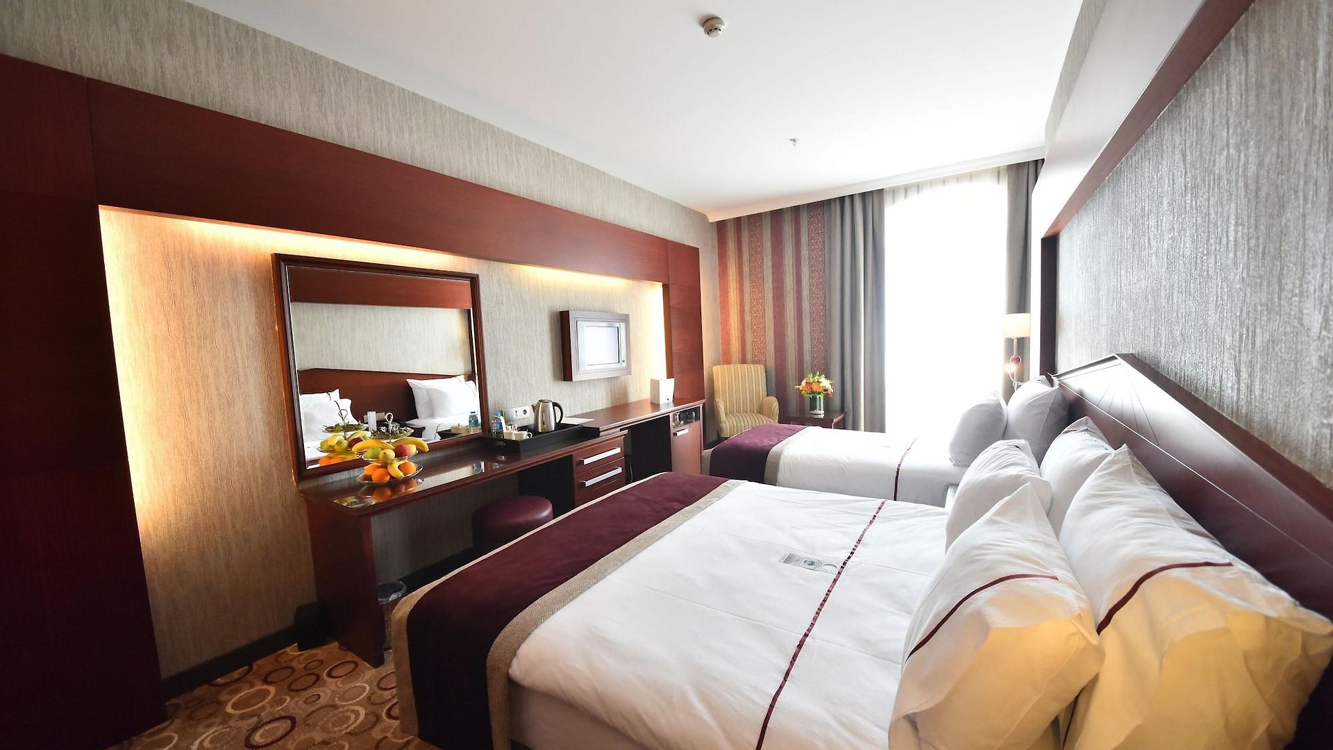 اتاقهای مجهز: اتاقهای این هتل با طراحی مدرن و استفاده از رنگهای ملایم و آرامشبخش آماده شدهاند. هر اتاق دارای امکاناتی چون تلویزیونهای LED، مینیبار، صندوق امانات، تهویه مطبوع و وایفای رایگان است.